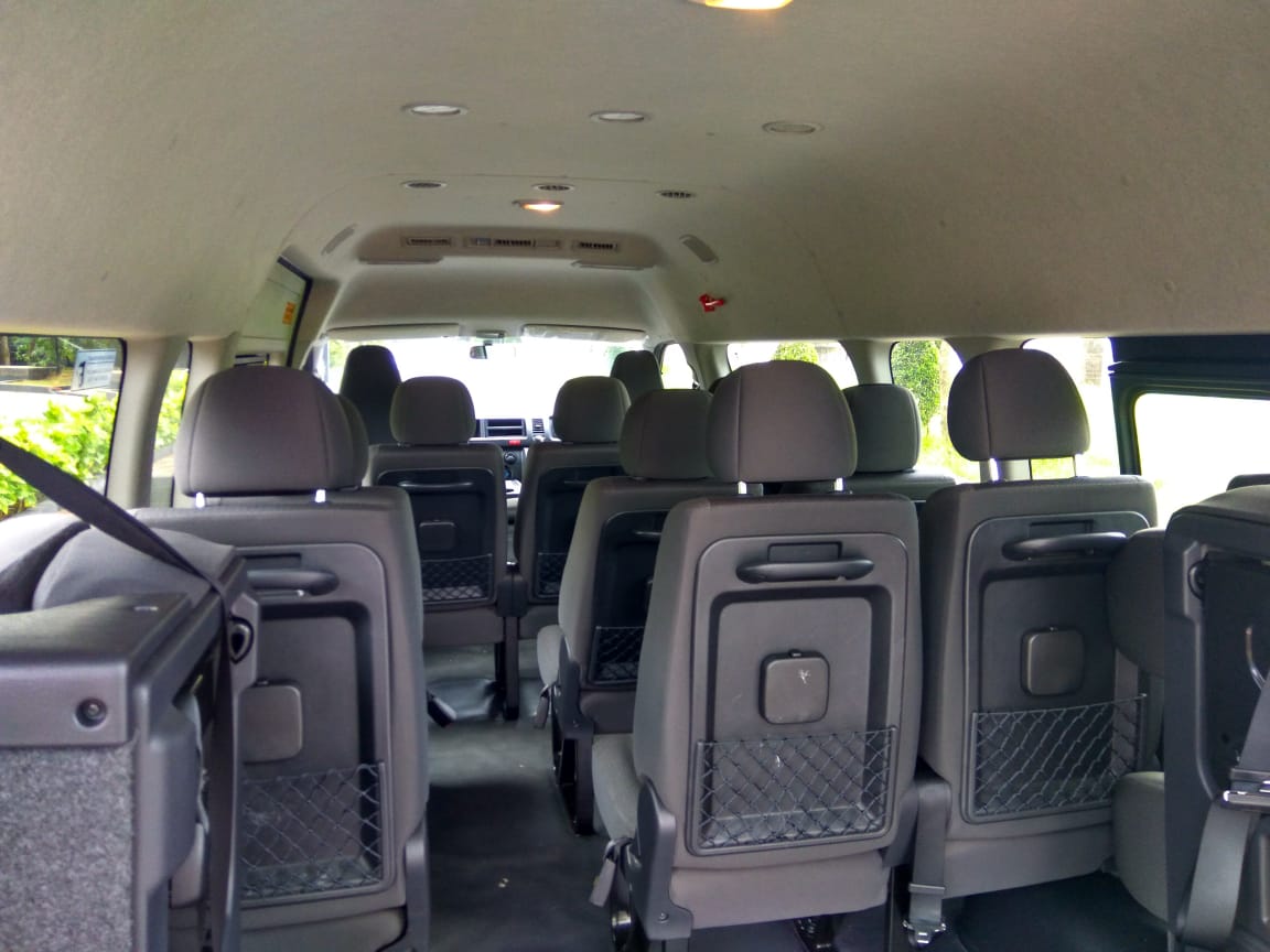 Kami menyediakan Toyota HiAce Commuter dengan kapasitas 13-14 penumpang.